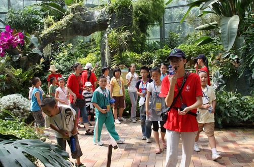 7月13日,2010年第一期“体验绿色奥秘”科技夏令营在华南植物园举行,30多位6-12岁的小朋友参加了活动。园主任助理蚁伟民在活动开始时致欢迎词并为营员授营旗。