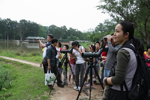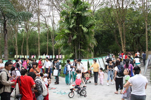 本次公众科学日活动的主场地设在华南植物园游览区。上午9点半,活动拉开序幕,园艺中心常务副主任蒋厚泉现场指导活动并主持了科普报告会。简曙光研究员及刘金成副研究员分别做了“植物、人类与环境”和“鸟类的野外识别技巧”两场生动有趣的科普报告。在科普信息中心广场,科技咨询解答了参观者有关环境保护、家庭花卉养护等公众关心的社会热点问题及实用技术;在专类园区,专家向游客介绍植物生物多样性的保护与保育;在园区各处,还开展了鸟类科普专题活动,观鸟专家为游客指导观鸟活动,让公众更加深入了解植物与鸟类的关系。