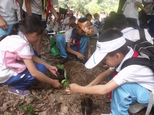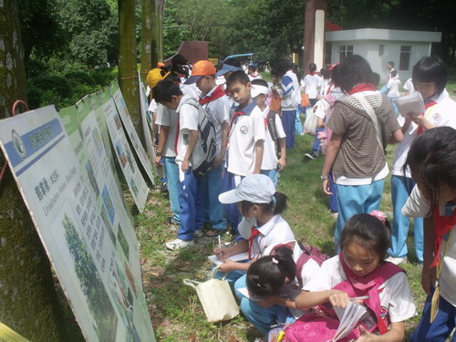 为了使小学生们全面了解和认识大森林的美好,鼎湖山保护区派出科普辅导员,循序渐进的开展多项科普活动。首先,一场“鼎湖山森林探秘”的讲座引起学生们的兴趣,恐龙的食物桫椤、有“铁木之称”的格木、省鸟白鹇、“四不像”苏门羚等神奇缤纷的森林植物、形态各异的野生动物使学生们从图片中发现大森林的神秘与奇妙。