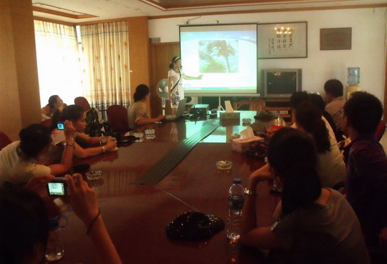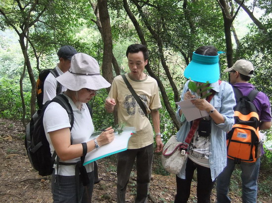 保护区管理局对老师们的到来表示热烈的欢迎,并为客人们安排了丰富多彩的活动。首先,一场科普讲座《北回归沙漠带上的绿色明珠——鼎湖山》为大家全面介绍了神秘而又神奇的保护区;随后,安排工作人员带老师参观了生物多样性展厅,派出植物分类学专家带客人深入老鼎、鸡笼山野外科普教育径进行物种识别和生态考察。教师们一边聆听讲解,一边埋头观察、细心记录、热烈讨论。科考活动结束时,他们都认为此行获益匪浅,并表达了依依不舍的情感。