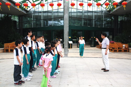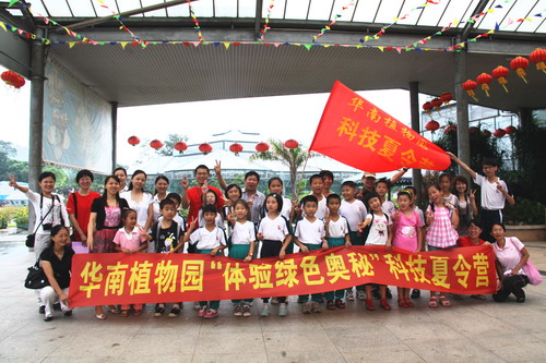 8月10日,华南植物园第二届“体验绿色奥秘”科技夏令营活动在该园顺利举行,20位6-13岁的小朋友参加了活动,园艺中心常务副主任、策划总工蒋厚泉为开营致辞并为营员授旗。