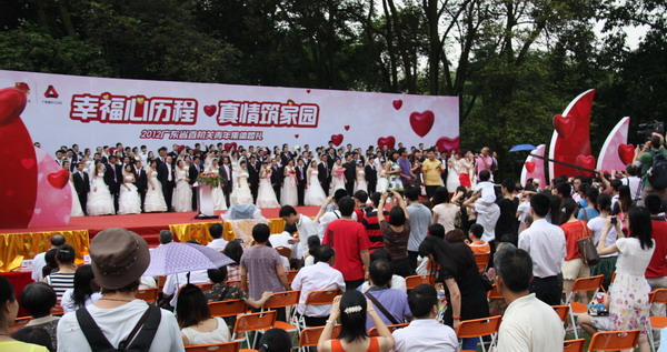 5月20日,由广东省直团工委、广发银行团委主办,华南植物园协办的主题为“幸福心历程,真情筑家园”的省直机关青年集体婚礼在华南植物园举行。省直机关工委副书记董励国,广发银行行长利明献、广州分院党组书记郭俊、团省委副书记池志雄、华南植物园党委书记任海等领导、嘉宾及78对新人共1000余人参加了活动。