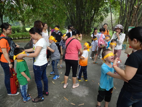 最受孩子和家长欢迎的科普活动项目是专门为母亲节设计的自然盲径体验,在一条精心布置过的林荫道上,家长和孩子们蒙着眼睛,调动全部感官进行各种自然体验,“光着脚丫走在石头上”“摸摸树皮”“猜猜我是谁”“捡起一团软软的棉絮”。孩子们还被考验是否记得妈妈的生日,领着妈妈穿过丛林,捡起对应妈妈生日月份的数朵花等等。孩子们深刻感受到妈妈的手多么温暖和安全,而且也意识到,妈妈也有需要自己的时候。