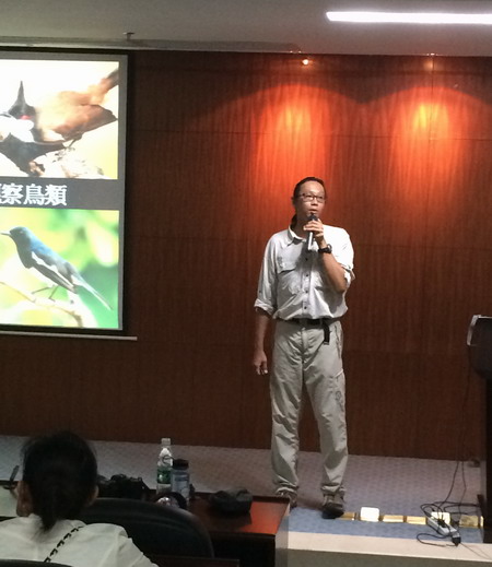 会上,往期飞羽志愿者深情回顾团队的成长历程,也分享了在团队服务中的所思所悟和所获。郭世军先生介绍了飞羽志愿者团队的组织结构和规章制度,并公布了第四期飞羽志愿者招新笔试题目。在随后进行笔试及面试后,第四期飞羽志愿者团队将从这100多名大学生中产生。国庆黄金周期间他们将正式上岗为公众提供免费导赏服务,带领公众在华南植物园进行观鸟、观蝶、观昆虫、观植物等自然观察体验活动。