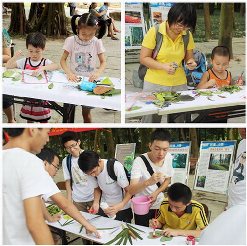 华南植物园充分发挥在植物科学、野鸟观察、奇妙夜观等广受欢迎的特色科普活动上的经验,将特色科普项目引入社区,广受小朋友的欢迎。彩叶拓印、种子陀螺比赛引导孩子们关注身边不起眼的植物,让孩子认识到随处可见的树叶,也能摇身一变,成为艺术的宠儿,创作出精美的粘贴画作品,认识到地上普通的植物种子通过简单制作也能变成孩子们手中的玩具——陀螺。鸟类彩绘创作给孩子广阔的想象空间,让孩子有机会为鸟儿创作彩色衣裳。活动现场,科普辅导员还为社区居民发放《植物园观鸟手册》、《温室世界植物奇观》等科普宣传读物,现场介绍养生保健植物、家居植物养护、登革热防治等科普知识。在华南植物园科普进社区活动中,居民踊跃参与且脸上洋溢着快乐与满意,许多市民希望华南植物园能多开展类似的科普惠民活动。