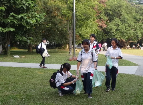 随后,科普辅导员组织学生从自身出发,以自由发言的形式进行座谈与大家分享,如:随手扔垃圾,乱踩草坪,乱折树枝等话题,使学生认识到人类只有一个地球,保护地球的环境就是保护我们人类自身。同时,也教育学生们从身边做起,积极投身环保活动,增强他们的环保意识,做文明的中学生。最后,同学们纷纷拿着垃圾袋、戴着手套等工具,用实际行动亲自体验捡垃圾。