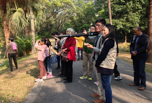 1月3日推出的观鸟自然导赏活动受到市民的追捧与好评,近500名游客参与了活动。活动由华南植物园和施华洛世奇光学公司联合举办,旨在引导与启发游客发现身边的美,提升认识自然、热爱自然、保护自然的意识。此次活动,除了观赏可爱的鸟儿,科普志愿者沿途还为游客导赏植物园里的奇趣植物,引导游客欣赏自然之美。目前,华南园有记录的鸟类134种,逢周六上午举行免费观鸟导赏活动,期待通过活动让更多美丽的鸟儿为广大游客所认识与爱护,从而让更多的民众参与到保护自然环境、维护生态平衡的活动中。