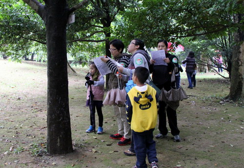 随后,好玩的“林中寻宝”游戏开始啦!通过互动参与的形式寻找植物的游戏,根据提供的“分布地图”,在茂密的树林里寻找出任务表上对应的植物,并写出相关重要特征。活动中的配合让家长和孩子之间的沟通更紧密,也让孩子们在学习之余放松身心压力。每当孩子们找到目标就赶快记录下来,妈妈们也玩得非常投入,最后完成任务的小朋友们都得到了可爱的小礼物。