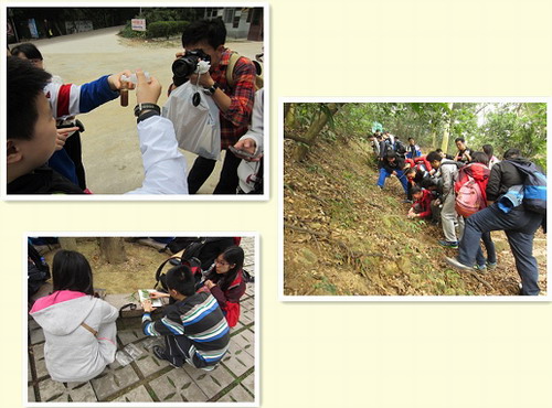 下午同学们在工作人员的带领下进入鼎湖山科研试验区的考察,参观了集水区的实验设备、树干流收集设备,以及酸雨沉降实验样地,了解最新的科研项目是酸雨沉降与全球碳失汇的关联研究,虽然对于这些科研项目一知半解,但是还是认真听讲并提出了自己的所关心的问题。这条路途难走,同学们还能苦中做乐,吟着小曲儿,用自己敏锐的眼睛发现沿途上的小动物,有蜘蛛、白蚁,还有迷你型的小蜜蜂。最后一站,参观了氮沉降的实验样地,同学们的好奇心被打开了,不停地发问这个装置是用于做什么研究的,怎么样模拟氮沉降,研究氮沉降有什么科学意义等等。一个同学还在氮沉降样地附近看见有些树的树干上戴着“盔甲”,原来这些“盔甲”里面是用于分析树种对水分利用效率研究的小小装置。