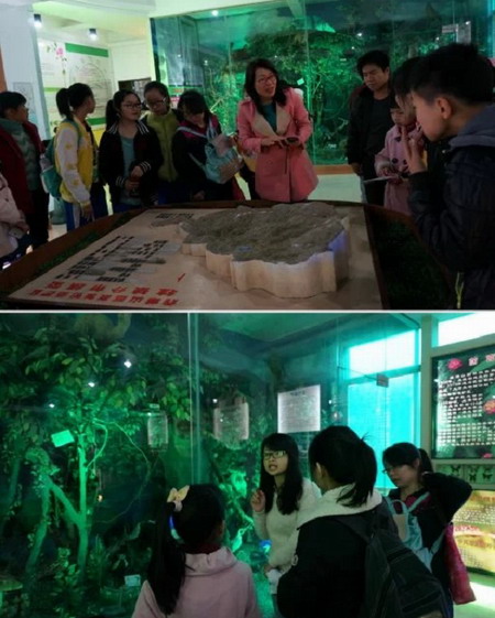 在活动开始之前,学生们来到了大自然展厅,在工作人员指导下近距离观看了展厅中陈列的动植物标本,观察了部分鸟类的体态特征,并了解适合鸟类所生存的生态环境。