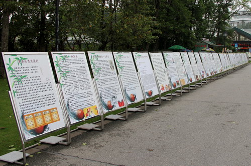 在温室稀树草坪前,药用植物与凉茶文化传播、植物科学与您的健康、植物环境人类科普展以及各专类园区均吸引了众多观众驻足观看,通过科普讲解员们的介绍,对于食品安全、植物营养、药用植物、濒危植物等有了更深的认识。