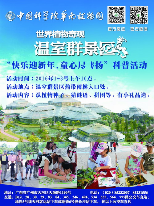 羊年悄然而去,猴年即将到来。辞旧迎新之际,华南植物园为了丰富广大游客特别是青少年的假期生活,普及科学知识,提高动手能力。2016年元旦期间,华南植物园策划了丰富多彩的系列科普文化活动。
