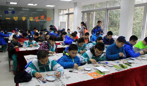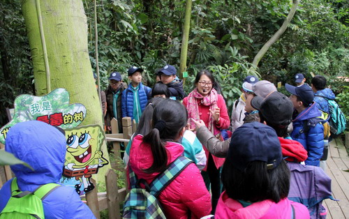 在科普老师的指导下,学生们在野外考察过程中还收集了不同颜色、形状的树叶、枝条、果实等自然材料。在互动实验室,学生们按组开始集趣味性与创新性为一体的大自然艺术品的制作。在科普老师柯萧霞的指导下,学生们充分发挥自己想象力和创作力,做出了可爱的“孔雀开屏”、“双龙戏珠”、“小金猴”等栩栩如生的植物艺术作品,大自然艺术品的制作让他们感受到自然界的多姿多彩,也体验着自己动手创造的乐趣。