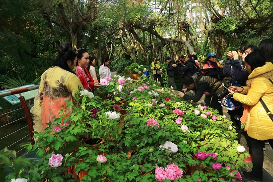 牡丹花展期间,推出营养保健的牡丹籽油、牡丹花茶供游客品鉴,现场还可欣赏牡丹绘画、汉服文化展演等科普文化活动。“第六届牡丹花展”将于2月15日开幕,持续到3月11日。年三十到初六,华南植物园大门票7.5折优惠,温室门票8折优惠。