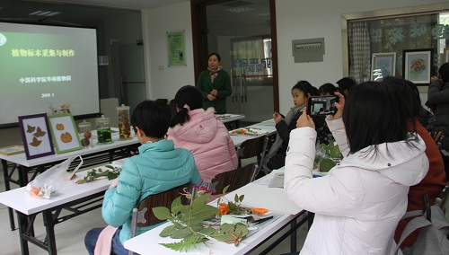 随后回到室内课堂,通过老师图文并茂的PPT的讲解,学员们了解到植物标本在科学上的作用和意义,被老一辈植物采集家为科学献身的事迹深深感动,也认识了几种常见的植物标本类型,了解到不同类别的植物标本如何采集、压制、装订与保存方法。