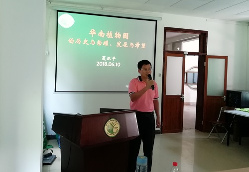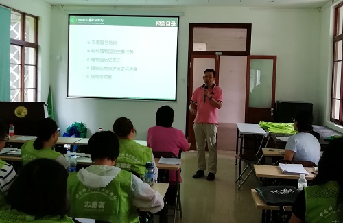 夏汉平研究员为志愿者们带来题为《华南植物园的历史与荣耀、发展与希望》的报告。夏汉平声情并茂地讲述了植物园悠久辉煌的历史,植物园建设过程中的各个重要时期及其80年来发展中的风云人物,引导志愿者热爱植物园、发现自然的魅力。廖景平研究员作了《现代植物园:历史、现状与挑战》为题的培训报告,介绍了国际植物园志愿者团队的发展状况及发挥的作用,并介绍了现代植物园基本工作和评定标准。