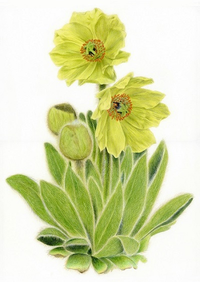 阿华田(刘丽华),1995年生于广东汕头,2018年毕业于华南农业大学园林专业。2014年开始接触彩铅画,并爱上植物绘画,目前就业于深圳红树林基金会,从事自然教育,仍在创作博物绘画,并绘制了多幅鸟类科学画、生态图等。其作品《全缘叶绿绒蒿》获第19届植物学大会植物艺术画展铜奖,曾为多个植物新种绘制墨线图。