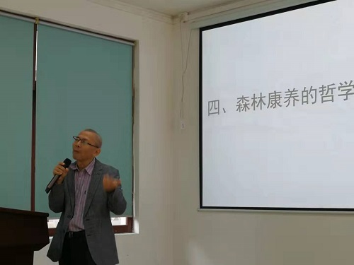 华南农业大学黎德化教授给我们做了题为“森林康养的哲学思考”的报告,讲述了森林康养的历史、国内外康养现状及中国当代的康养政策。