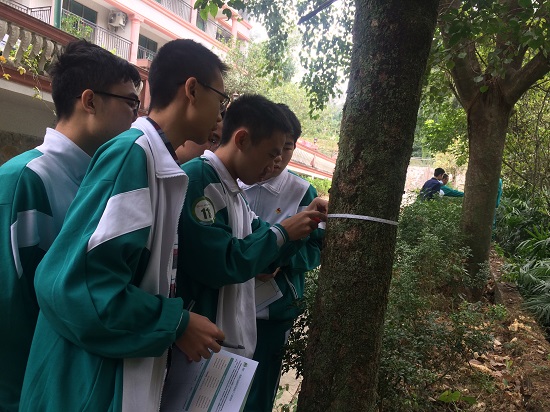 初一年级的研学活动从“风神应聘会”探究风传种子传播秘密开始,学生通过课程学习和观察种子了解种子传播的方式和传播智慧,观察和描述风传种子的种子特征,接着通过实验计算不同风传种子的沉降速率和水平位移,对比两组数据思考并讨论获得风传种子速率的科学应用。高一年级则从“森林碳储量”课程开始,学习如何测算一颗树的碳储量和个人一年中的碳排放量,从而分析需要种植多少树木才能抵消自己全年活动产生的碳排放量并制定个人碳减排计划,通过学习和分享,学生们认识到日常生活行为导致或多或少的碳排放,从而避免不必要的生活浪费。