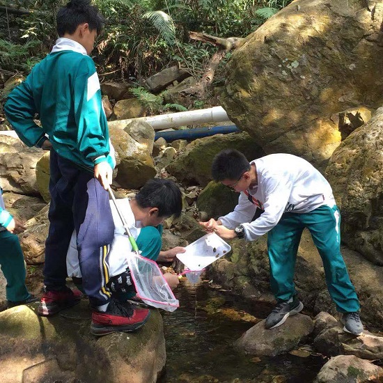 接着,两个年级的学生们进入到原始森林开展野外探索,完成了“大自然不说谎——水质指示物种”课程,通过观察水质指示物种来分析说明鼎湖山的水质情况,了解生物与环境的相互适应性和指示生物的科学应用;完成“一块石头的旅行”的课程,通过资料阅读、现场观察、比对测量等方法,分析和讨论卵石的形成过程和总结石头在旅行中的规律。