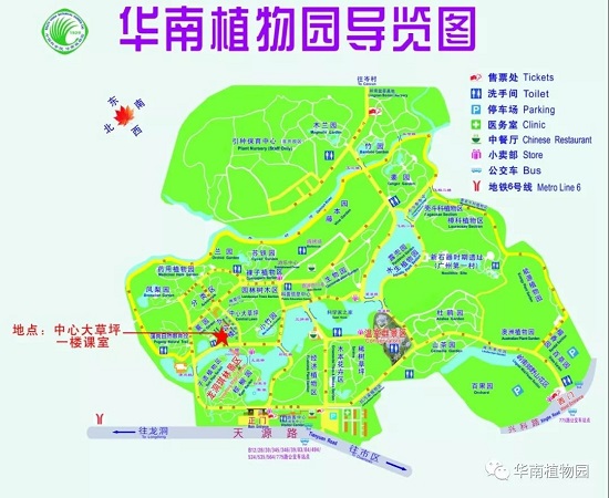 讲座地点:华南植物园中心大草坪办公楼一楼课室(游览区中心大草坪位于名人植树区旁,非温室前稀树草坪)。