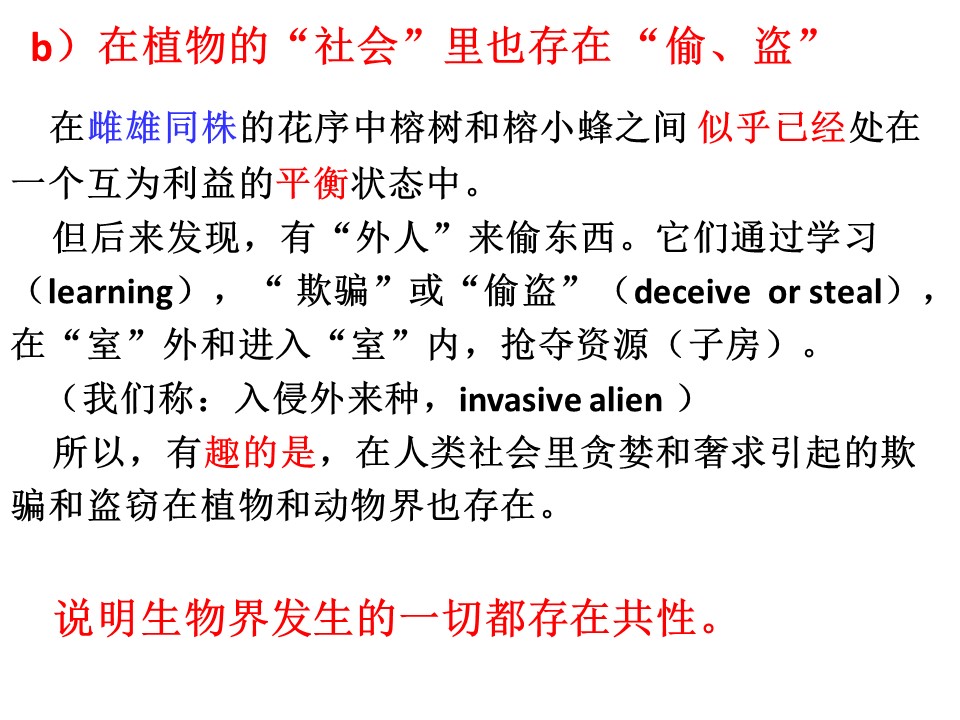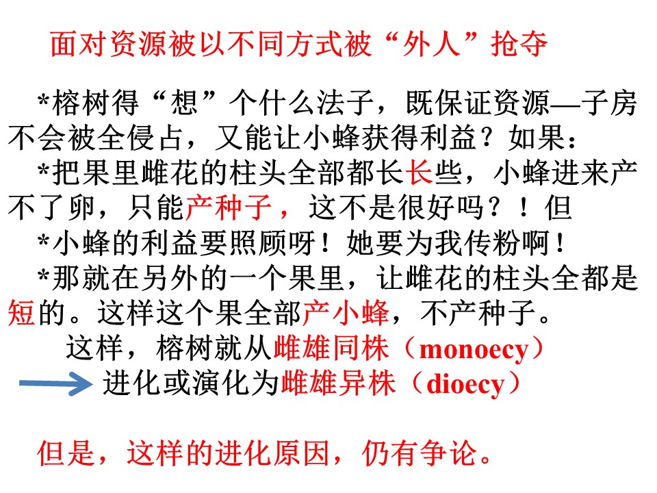 我原是从事光合作用研究的,光合行为是自然力和植物之间的相互作用的过程。而今天讲的是一种植物与一种动物之间发生相互作用的故事:榕树和榕小蜂之间的协同进化。这两种生物之间的关系,就像人和人体身体上的微生物之间存在着复杂的相互作用一样,有着很神奇和微妙的故事,也有很深刻的人生哲理。从大的方面讲,这些故事涉及的就是我们常说的“生态学”(ecology)。但具体学科是进化生物学(evolutionary biology)。