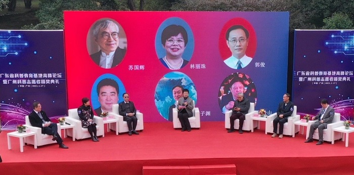 在随后举行的广东省科普教育基地高峰论坛圆桌会议上,苏国辉院士、郭俊、中科院广州生物医药与健康研究院党委书记/副院长段子渊、广州中医药大学第一附属医院副院长林丽珠、中科院华南植物园党委副书记/纪委书记徐海、广州市人大代表付松山等6位专家,就当前科普中的难点和热点问题进行了探讨和交流,并对未来科普工作提出了意见和建议。