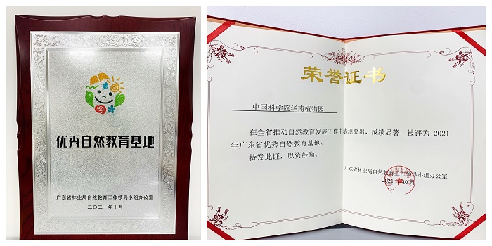 华南植物园被评为“广东省优秀自然教育基地”荣誉称号
