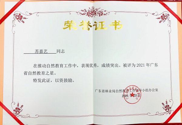 113日,以共享自然 绿美湾区为主题的第三届粤港澳自然教育讲坛暨嘉年华活动在深圳拉开帷幕。此次讲坛暨嘉年华活动由全国关注森林活动执委会、中国林学会、广东省关注森林委员会组委会指导,广东省林业局、香港渔农自然护理署、澳门市政署联合主办。中科院华南植物园在全省推动自然教育发展工作中成绩显著,被评为2021广东省优秀自然教育基地;同时,植物园科普旅游部苏嘉艺、鼎湖山保护区彭丽芳两位同志在推动自然教育工作中表现优秀,成绩突出,被评为2021广东省自然教育之星