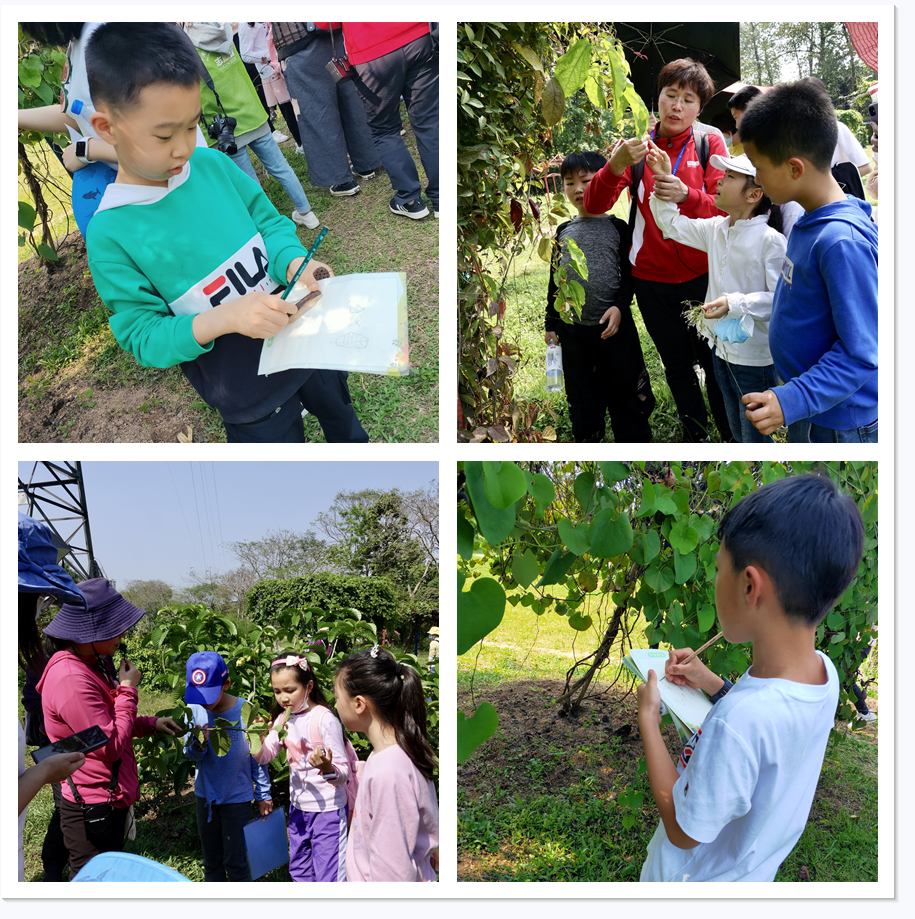 4月13日,难得晴朗天气,来自中小学的一群孩子们前往华南植物园开展了一场“探寻植物世界,创作紫藤国画”的研学活动。