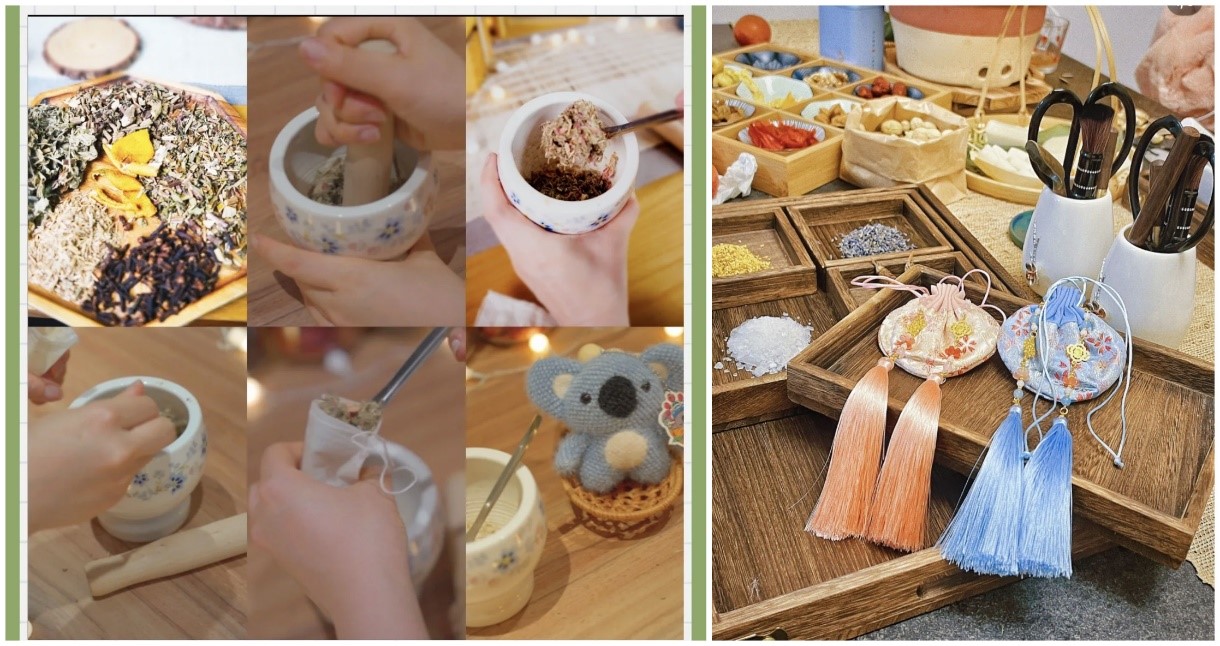每一种植物都有属于自己独特的味道,有些味道可以驱除蚊虫,香囊可以很好地将芳香药末装入布袋中,通过佩戴香囊,不仅可以去除蚊虫还可以保持香味,小朋友们可以在中草药香囊制作过程中,认识辨别不同草药的味道,动手磨一磨药草,自己称量,自己装袋,自己动手做一个小香囊。香囊由采摘到磨粉再带装袋,从无到有的过程,也给孩子们带来不一样的教育体验。