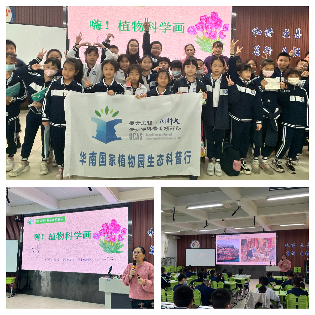 12月初,刘运笑、朱虹、刘勋成、房林和欧阳海雁5位老师来到黄埔区东荟城花园小学,给孩子们带来了《嗨!植物科学画》、《餐桌上的“绿色”明星》、《太阳光“唤醒”种子萌发的秘密》、《兰花世界探秘》《语文课本里的植物》等精彩科普课程,线下听讲人数约400人。