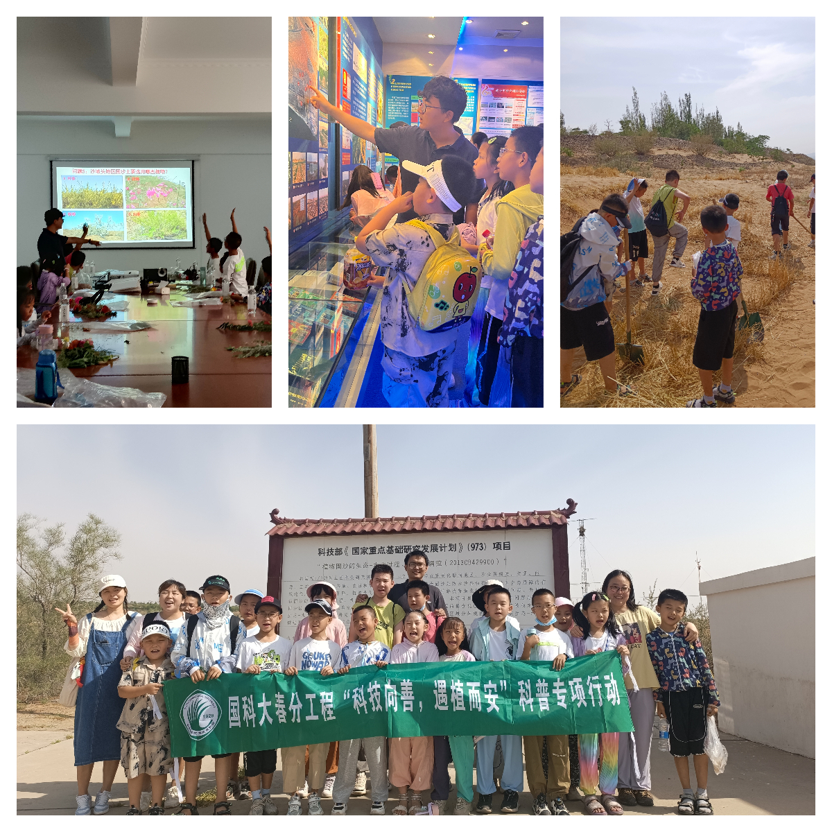 7月的沙坡头,九曲黄河万里沙。中国科学院沙坡头沙漠研究试验站2006年被科技部正式批准纳入国家野外科学观测研究站,也是联合国教科文组织人与生物圈和世界实验室的研究点。学员们跟随试验站的王炳尧老师深入走进“守沙人”的世界,了解沙漠科学研究的珍贵历史和近年来取得的科研成果,采集沙生植物,实地体验扎设麦草方格,为保护环境贡献一份小小力量。