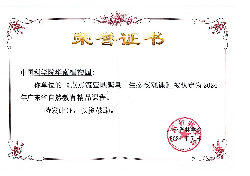 日前,2024年粤港澳自然教育季在珠海横琴国家湿地公园正式启动。为鼓励更多人投身于自然教育领域,推动自然教育活动的多样化、创新性和丰富性,利用品牌叠加效应,持续为自然教育赋能,为广东自然教育的规范化和高质量发展注入新动力,广东省自2021年起开始开展自然教育精品课程的认定工作。此次启动仪式也对荣获“2024年广东省优秀自然教育活动课程”的20个单位和个人进行了颁奖,中国科学院华南植物园《点点流萤映繁星—生态夜观课》入选。