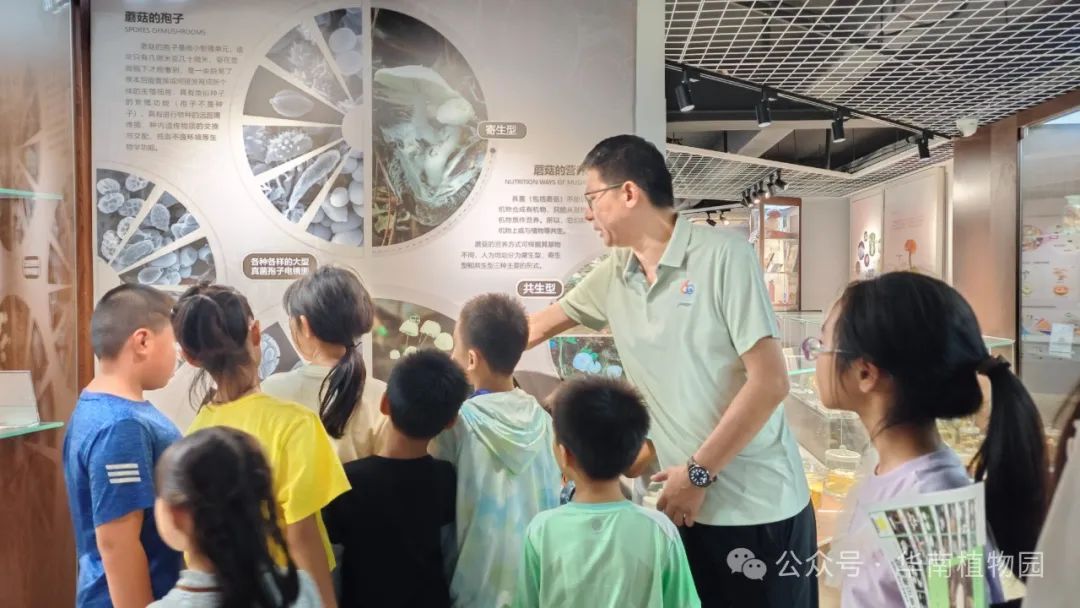 在华南菌类博物馆,大家认识了蘑菇的孢子、蘑菇的营养方式、食用菌、药用菌、毒蘑菇的多样性与分布等专业知识,以及具有重大经济价值的广东虫草及白肉灵芝等的模式标本、华南毒蘑菇的头号杀手致命鹅膏的模式标本、由广东省微生物研究所培育的全球第一株人工栽培的灵芝标本。最后张明博士为大家带来了一场多彩的蘑菇世界科普讲座,从真菌和蘑菇知识介绍、毒蘑菇识别误区及中毒应急处理、发光蘑菇介绍等4个方面进一步与大家分享了神奇的微生物世界,大家收获满满,对真菌世界有了更深刻的了解。