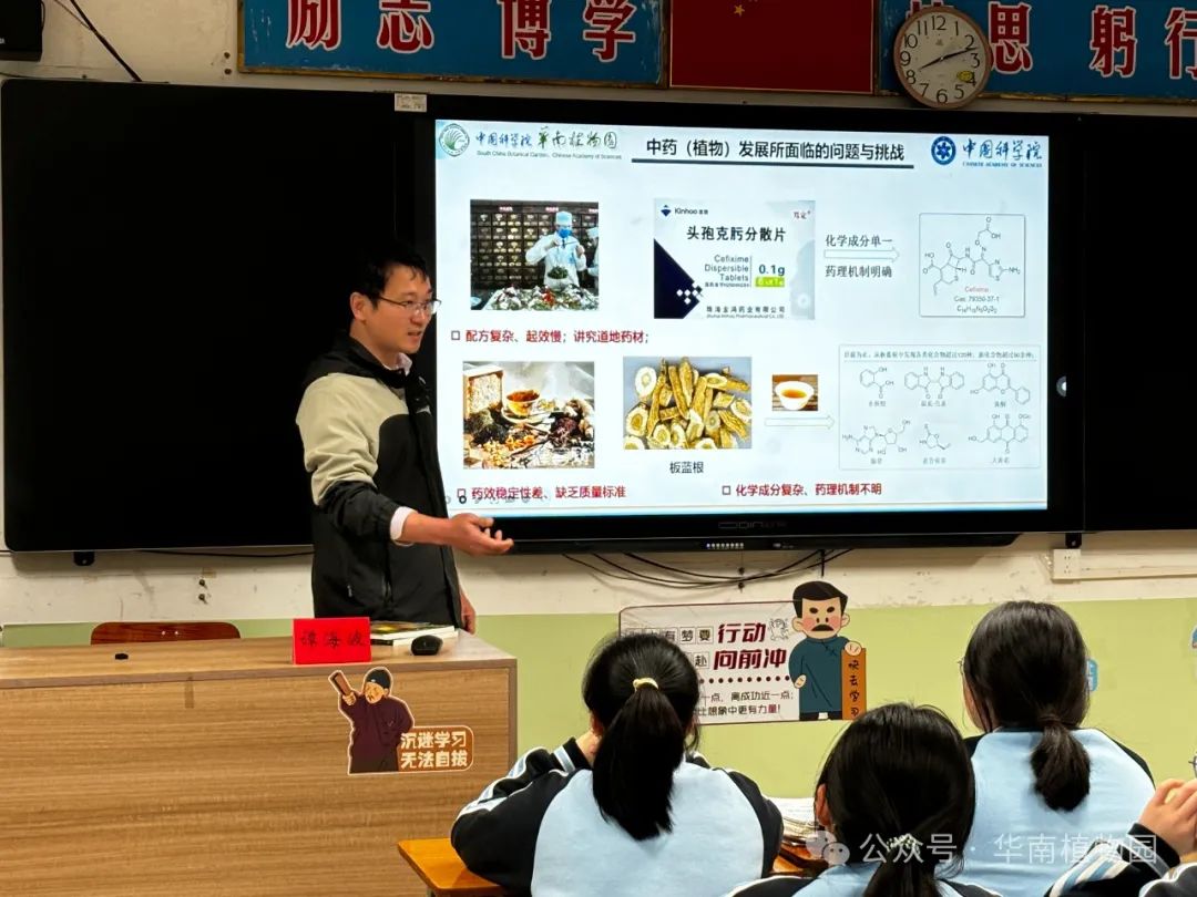 华南植物园农业与生物技术研究中心谭海波副研究员向高二年级开展主题为“天然产物与人类健康”的讲座。内容涵盖天然产物在人类健康中的重要性,包括青蒿素等天然产物的价值,以及非传染性疾病和传染性疾病对人类健康的威胁。分析了中国医药工业和中草药的发展现状、挑战和未来前景。详细探讨了天然产物在生活中的应用以及岭南特色药用植物的活性成分研究和抗MRSA先导药物的发现。