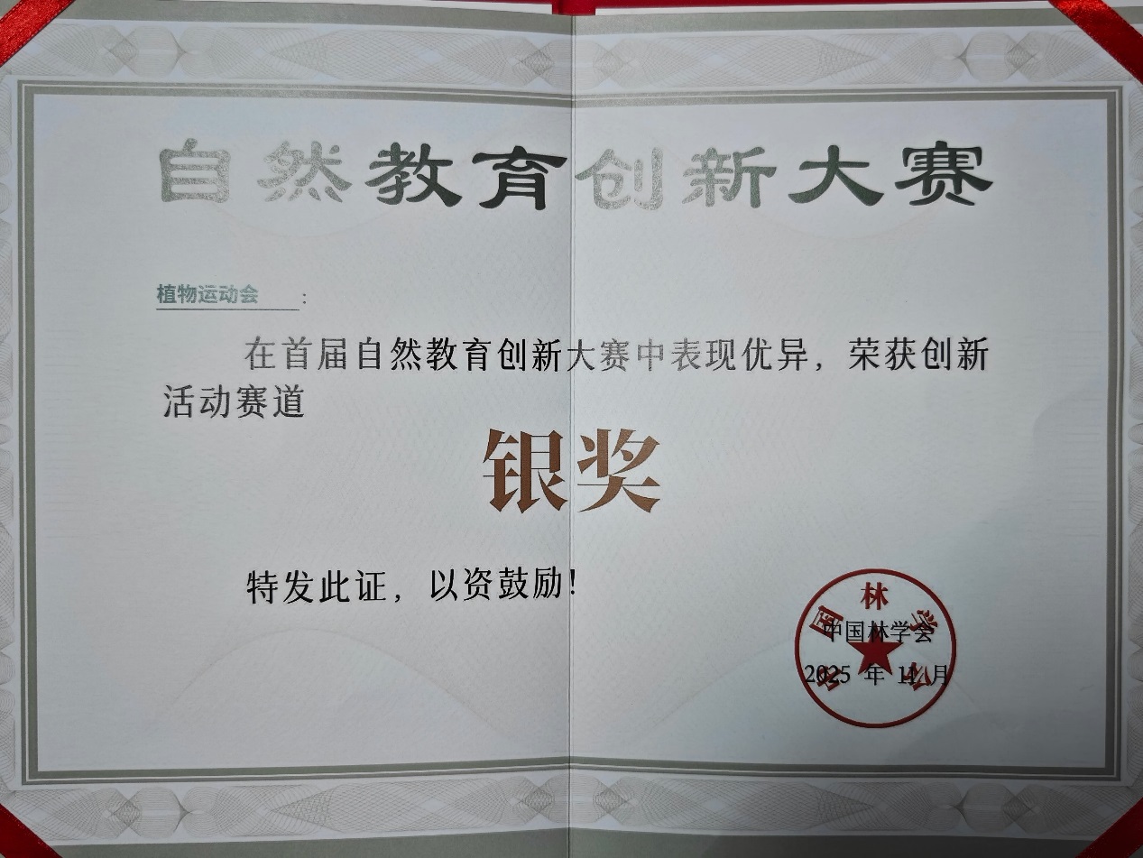 12月8日获悉,由中国林学会主办的首届自然教育创新大赛评选结果正式公布。由华南植物园季申芒、宁敏华、朱韵贤、谢丽青原创设计并实施的自然教育活动——“植物运动会”,凭借其独特的创意理念、跨学科融合的教学方式以及显著的实践成效,从众多参赛作品中脱颖而出,荣获大赛银奖。