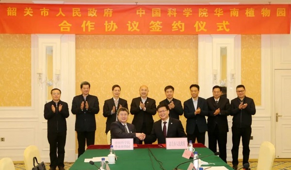 在双方领导见证下,罗晓勤、闫俊华代表双方签订了《韶关市人民政府与中国科学院华南植物园合作协议书》。
