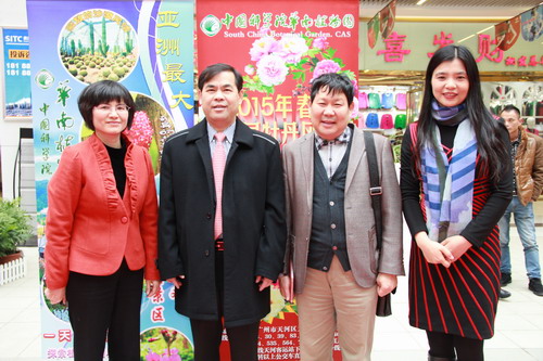 甘新参观华南植物园展位并合影(甘新 左2;蒋厚泉 右2;谭爱英 右1)