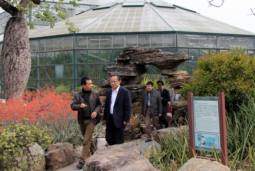 鲁修禄一行先后参观了展览温室群、木兰园、珍稀濒危繁育中心、苏铁园等专类园区和景点。参观途中,陪同人员详细介绍了华南植物园的园区分布、历史发展、科学研究方向、物种引进和保护、科普教育等现状。鲁修禄对华南植物园近年来的飞跃发展和丰富科学内涵的优美园林景观给予了高度赞赏。双方还就园艺造景、景观布局和植物资源引种等方面开展了交流。