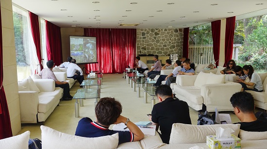 座谈会上,蒋跃明首先代表华南植物园对夏俊松一行的到来表示热烈欢迎。他简要地介绍了华南植物园的历史与现状,并重点就科研工作、人才队伍建设、院地合作、园区管理与发展等情况作了介绍。李志坚代表考察团详细汇报了国家植物博物馆筹备建设情况与规划设计方案构想,包括规划背景、资源要素、规划构思、规划方案等。夏俊松指出,国家植物博物馆是一项国家建设工程,现落户昆明市盘龙区,他们深感责任重大、使命光荣,做好国家植物博物馆的规划与建设是他们义不容辞的责任,代表团此行的目的就是向华南植物园交流学习园区规划、引种收集与迁地保育管理经验,同时请华南植物园的专家对国家植物博物馆的规划和建设给予指导和建议。