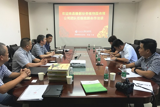 823日,江西南昌市赣鄱(溪霞)珍奇植物园建设项目团队访问华南植物园。华南植物园党委书记张福生,园艺中心副主任廖景平,科技促进发展中心主任王克亚、陈海山等热情接待了考察团一行。