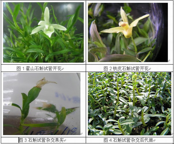 日前,华南植物园华南农业植物遗传育种重点实验室以段俊研究员为首的研究团队在石斛试管杂交育种上获得突破。该研究团队在研究掌握铁皮石斛(Dendrobium officinale Kimura et Migo)和霍山石斛(Dendrobium huoshanense C.Z.Tang et S.J.Cheng)试管开花规律的基础上,人为调控两个亲本在试管内开花,然后进行杂交授粉,再将授粉后的植株培养于培养容器中,在试管中果实发育三个月后播种于原球茎诱导培养基上,经过原球茎的形成、分化、成苗和生根壮苗阶段,在播种后四个月后成功获得一批杂交后代种苗。