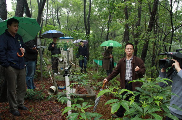 傅声雷研究员向与会代表介绍野外实验样地