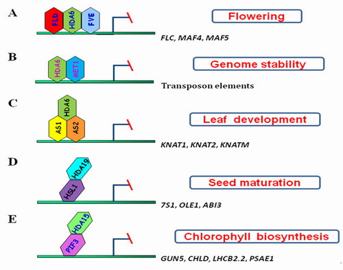 附图. 组蛋白去乙酰化酶参与抑制基因表达和发育调控的作用模式