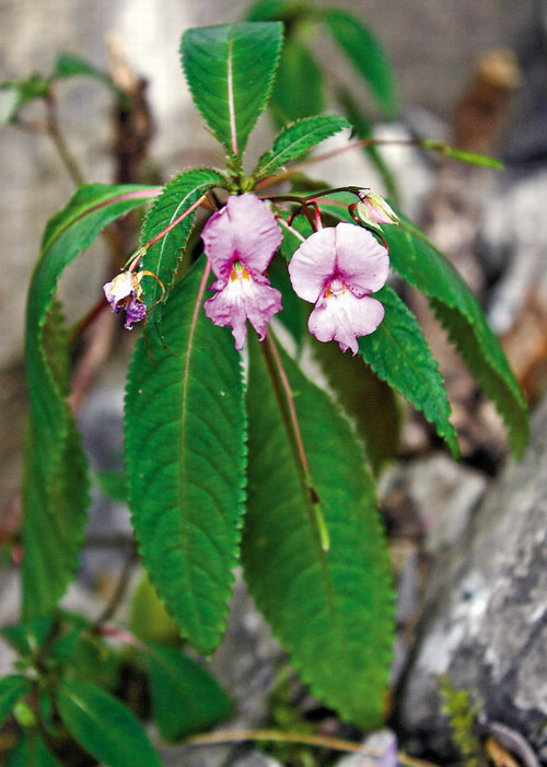 阳山凤仙,分布于南岭秤架盘古庙石灰岩上,海拔约810米,目前仅发现分布于南岭