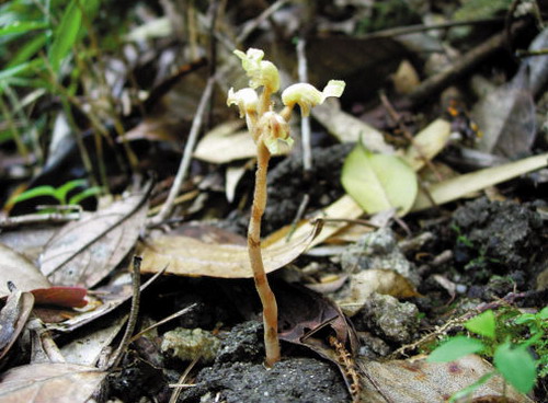 南岭叠鞘兰,生于海拔1700米林中腐土中,目前仅发现分布于南岭
