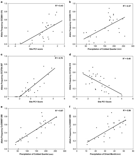 华南植物园植物科学研究中心孙晔副研究员指导硕士研究生李春利用EST-SSR (expressed sequence tag-derived simple sequence repeat) 分子标记对栲树自然群体适应性分化进行了大格局的取样研究。通过群体遗传学分析来寻找选择作用留下的遗传印记,并进一步利用气候因子和等位基因频率的关联分析来验证温度和降水梯度对栲树群体遗传结构的影响。研究结果发现温度和降水,特别是最干旱月份、最干旱季度和最冷季度降水对栲树群体遗传结构有重要影响,尽管绝大多数的遗传位点表现为选择中性,但4个EST-SSR位点明显受到歧化选择的影响。说明基因交流在栲树自然群体中普遍发生,歧化选择只作用于基因组特定区段。