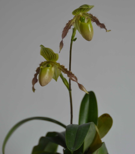 ‘绿翡翠兜兰’是2008年以引进的报春兜兰‘Z-2’(Paphiopedilum primulinum ‘Z-2’)为母本、菲律宾兜兰‘Z-1’(Paphiopedilum philippinense ‘Z-1’)为父本进行杂交,经无菌播种繁殖而成的杂交一代品种。多年多点试验结果表明,其遗传性状稳定一致。