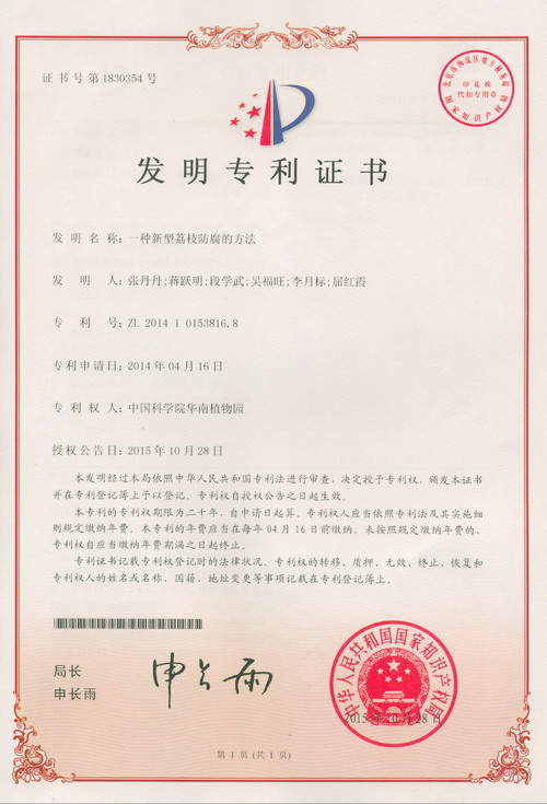 11月19日获悉,由中科院华南植物园张丹丹、蒋跃明、段学武等科研人员完成的“一种新型荔枝防腐的方法”获得国家发明专利授权(专利号:ZL 201410153816.8)。